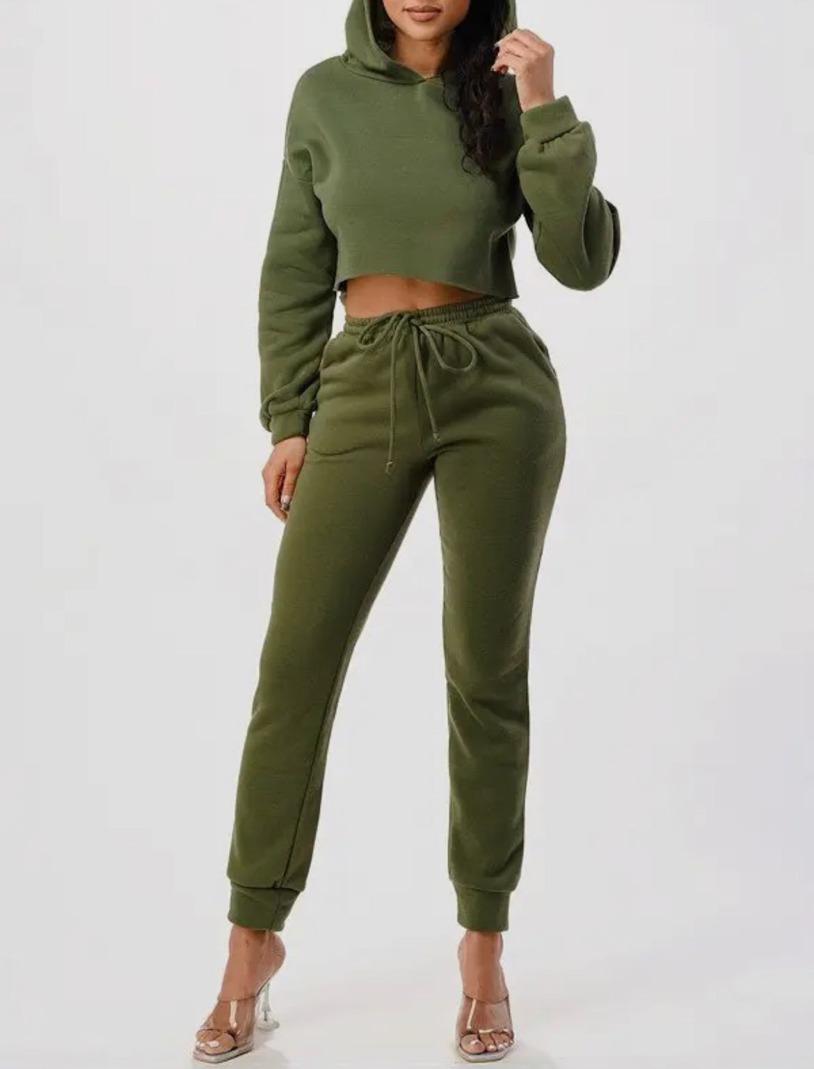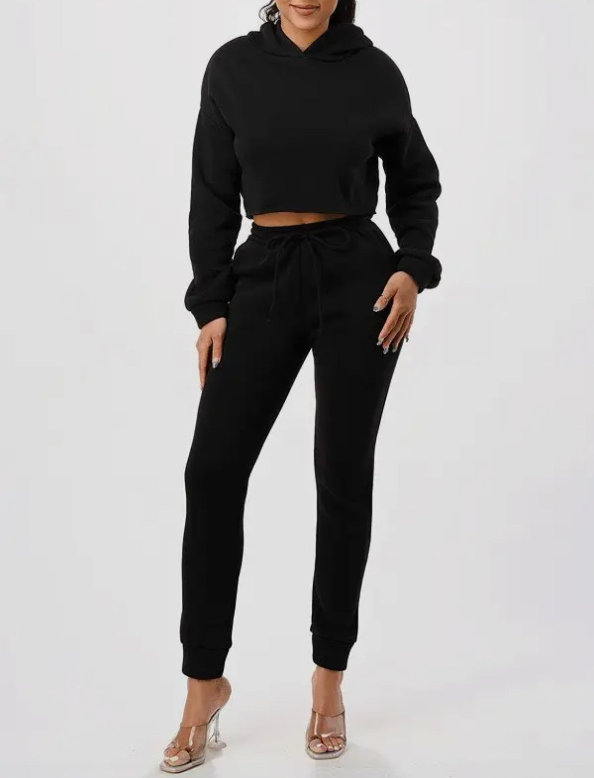 2Pc Set Crop Hoodie and Matching Sweat Pants