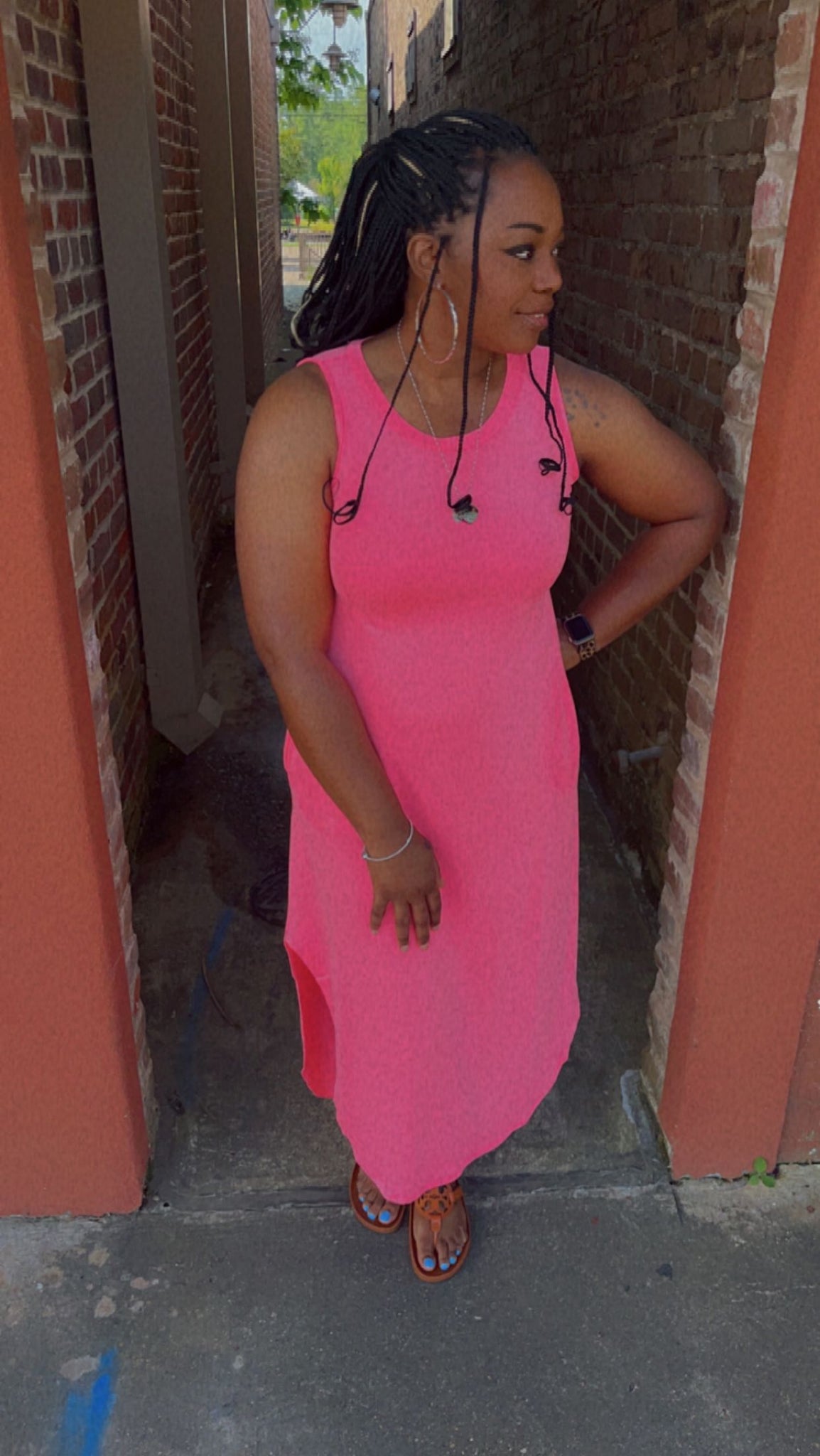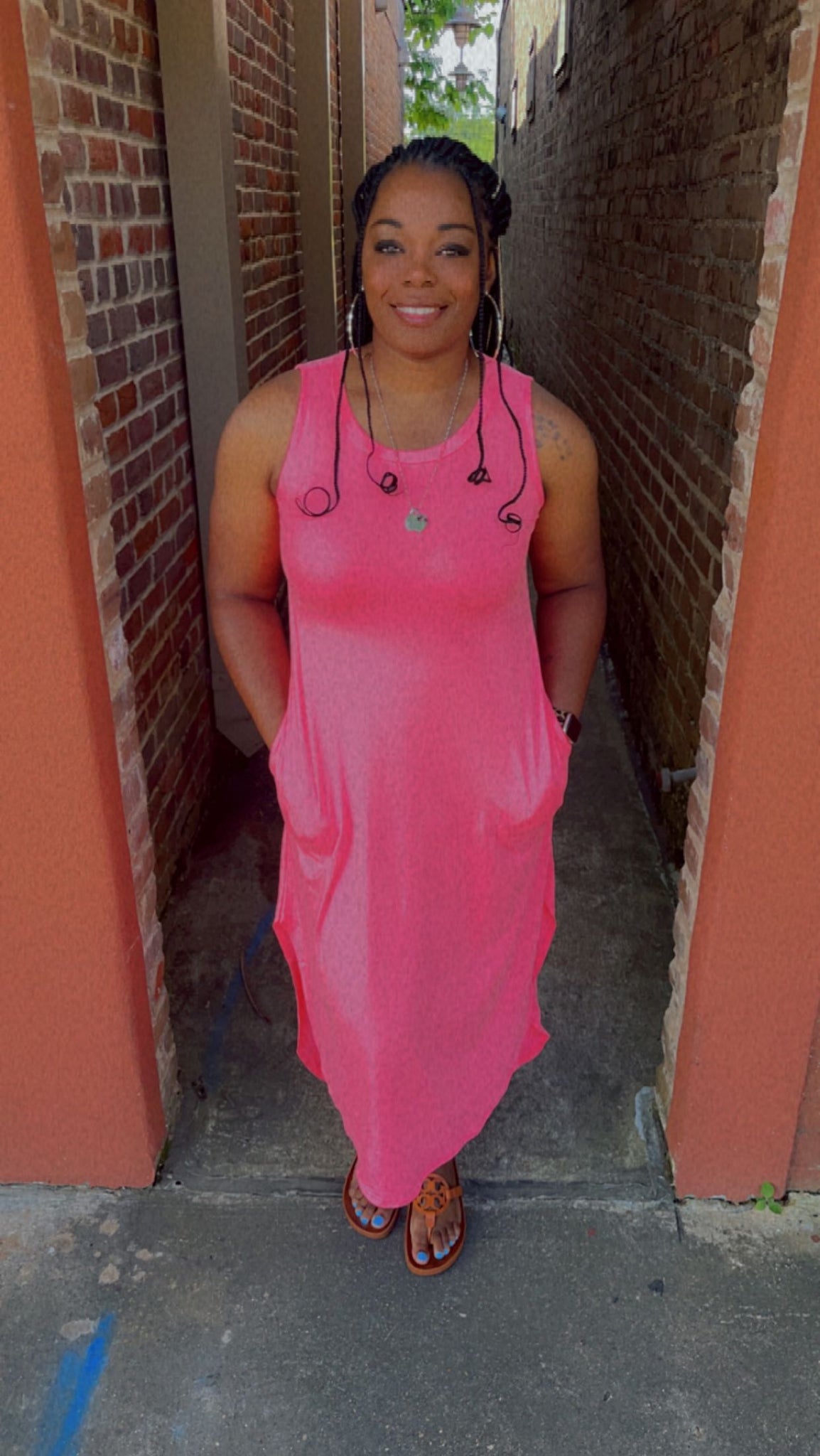 Brushed Dty Sides Slits Dress with Pockets